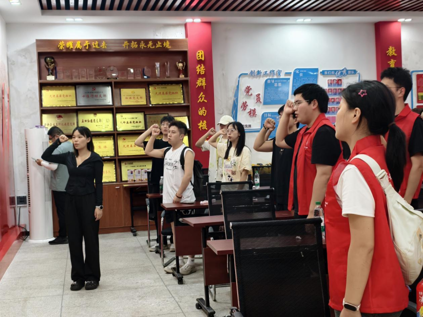活动伊始,实践团一行抵达首站——大冶有色铜绿山矿。在企业党员活动中心,团队成员领略红色足迹,了解矿山企业党员先锋的模范事迹。在众多前辈党员的感召下,学院党员代表,重温入党誓词。