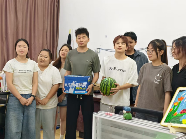在研究生工作室,学院党委书记江本武对留校研究生投身科研项目的钻研精神给予高度肯定,现场为同学们送上西瓜、饮料等消暑物资。他叮嘱同学们在努力学习的同时,务必遵守学校暑期留校管理规定,强化安全防范意识,注意交通、人身及财产安全。他表示,学校学院将全力为留校学生提供良好的学习和生活保障。