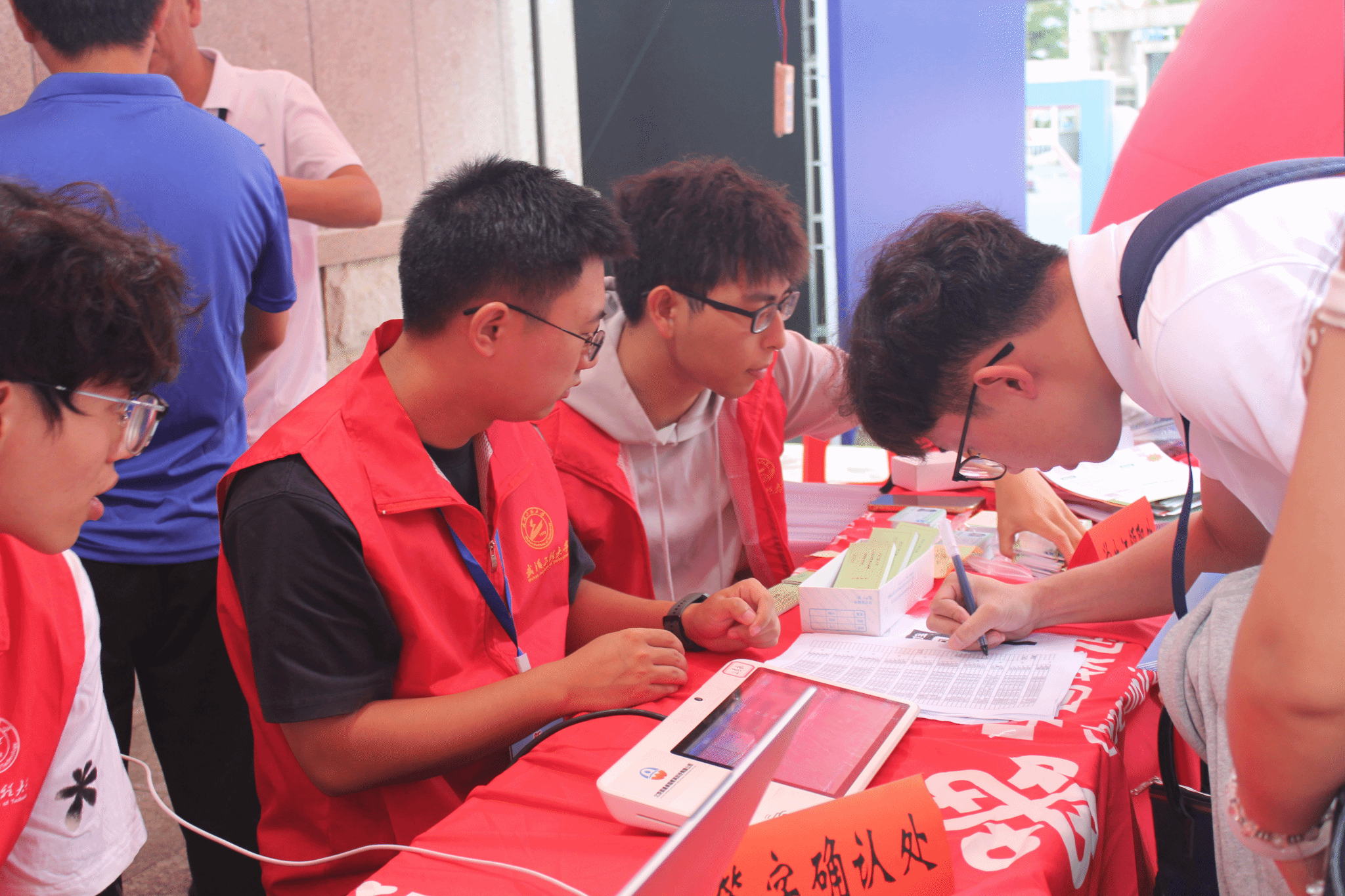 2025级迎新工作在武昌校区有序开展。学院领导班子、全体辅导员、专业教师代表及百余名本科、研究生志愿者全程参与,以“精准服务、暖心关怀、专业引领”为宗旨,圆满完成169名本科生新生和76名研究生新生的报到接待工作,为新生开启大学征程铺就了温暖底色。