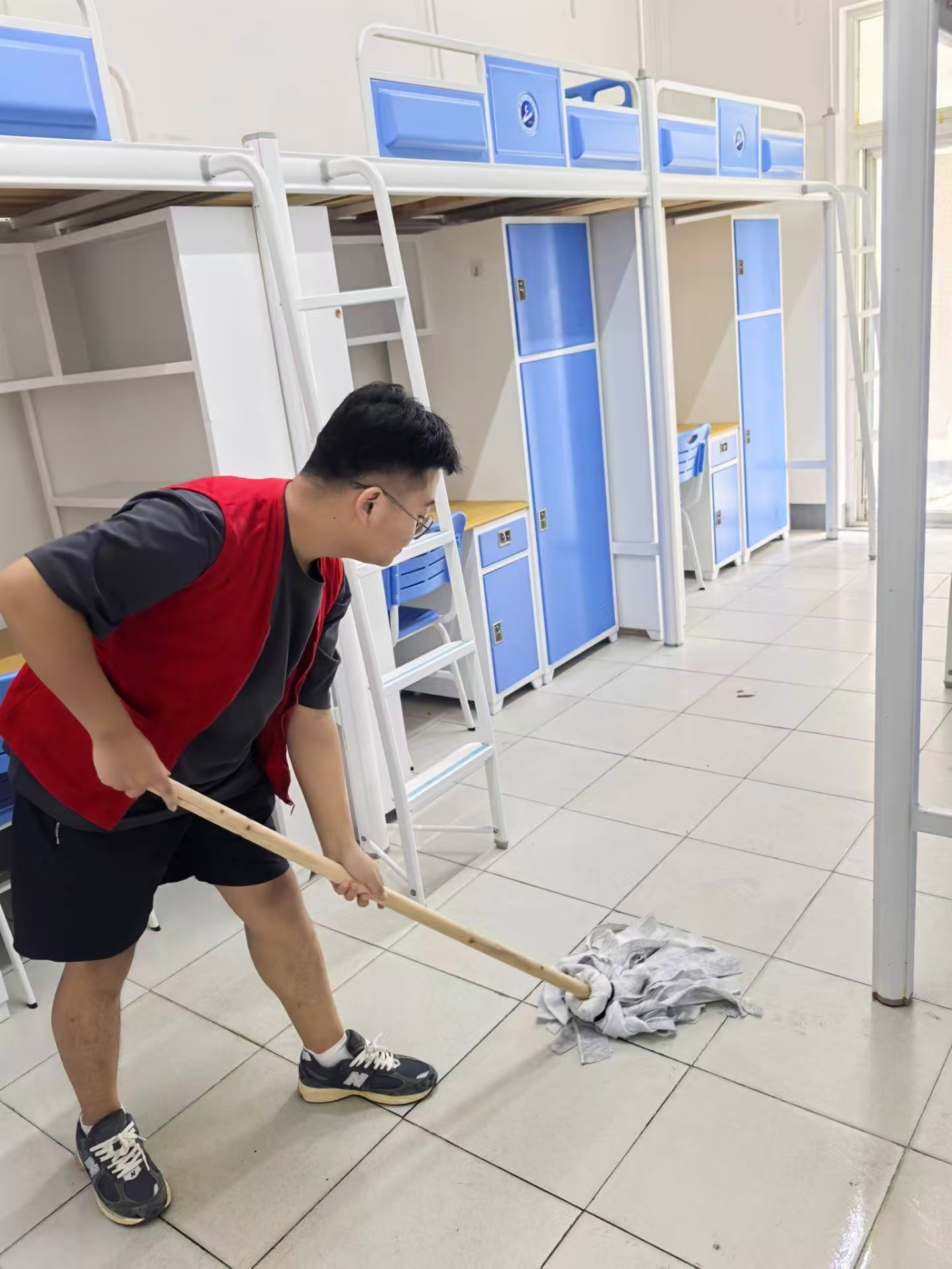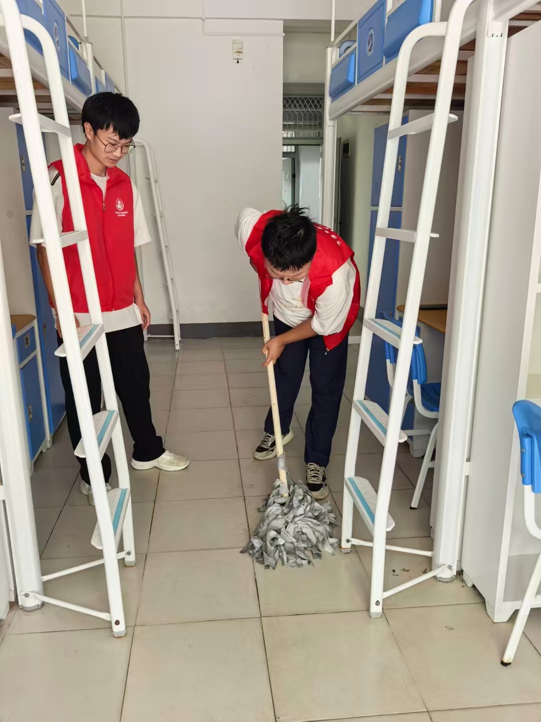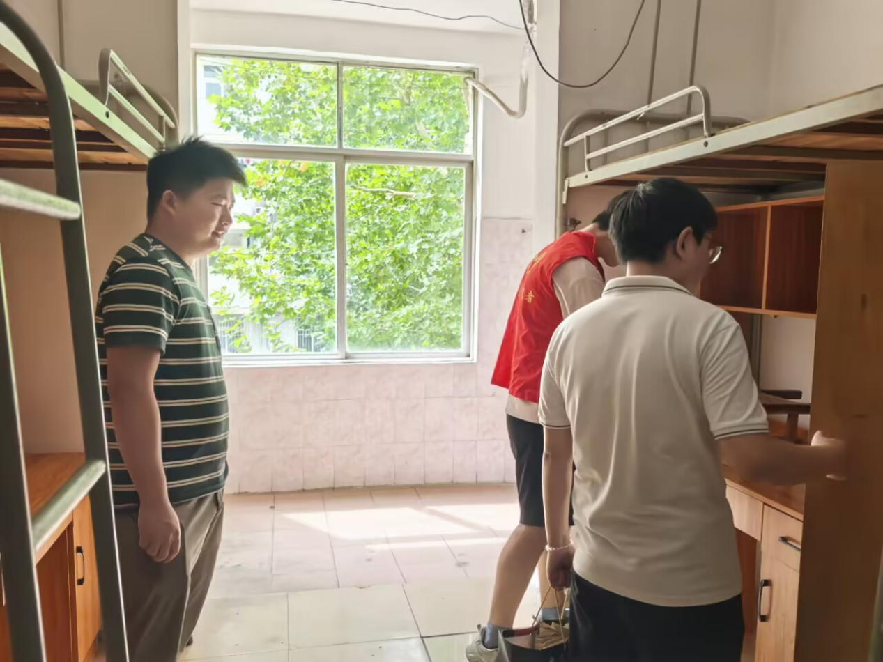 9月8日上午,学院组织老生志愿者,在学院全体辅导员的带领下对每一个新生宿舍的卫生环境进行了专项清理,并对新生宿舍可能存在的安全隐患和设施损坏等问题进行了排查和上报,力求让学生们拥有一个安心舒适的环境。