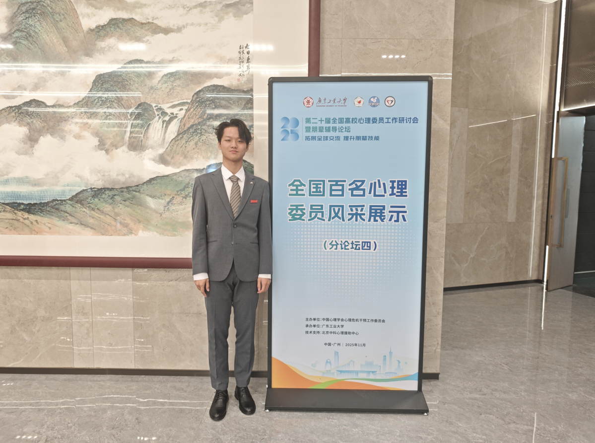 2023级本科生郭晓东凭借扎实的心理素养、清晰的朋辈辅导思路和出色的现场表现,成功入选“2025年全国百名心理委员风采展示”,并当选2025年全国心理委员论坛秘书处成员。