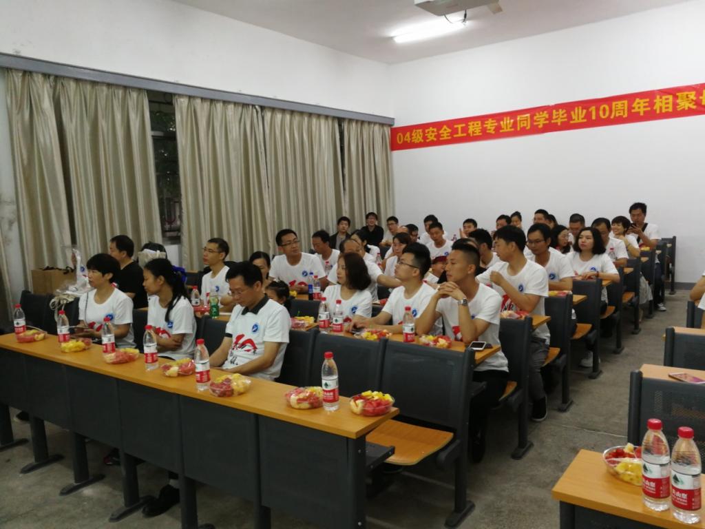 20日上午10时,学院在兴发矿业大楼举行了安全工程专业2004级毕业生毕业十周年返校主题班会,学院党委书记孔海霞、安全工程教研室全体教师以及14、15、16级部分同学与会。班会开始时,投影屏幕上放映了十年前他们学习和生活的珍贵照片。