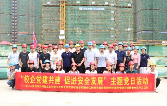 安全工程党支部与浙江二建中南公司党总支在浙江二建武汉名都花园项目部组织开展了“校企党建共建,促进安全发展”主题党日活动。浙江二建中南公司机关支部书记、总经理助理沈江红、名都花园项目支部书记张明星、名都花园项目副经理李保明、草榴社区