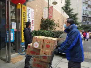 学院党委书记江本武作为志愿者为社区搬运生活物资
