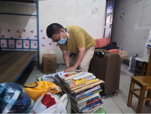 采矿工程专业班主任张卫中老师在学生宿舍为毕业生打包行李