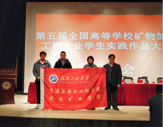 高度重视本次大赛,在赛前为参赛队伍配备了指导老师。前期对学生参赛作品进行了预答辩,并提出修改意见。经过激烈角逐和大赛评委会评选,作品“双酯Geimini季铵盐在氟磷灰石与石英界面吸附行为的研究”(完成人:黄高亮、戴建豪、刘丹章,指导老师:翁孝卿)荣获全国一等奖;作品“Reverse flotation of collophanite using isooctanolpolyoxyethylene ether phosphate as a novel collector”(完成人:赵李欣然、刘成龙、张文,指导老师:李洪强)荣获全国三等奖;作品“一种加热介质为多段陶瓷球的卧式球团矿爆裂温度测定装置”(完成人:刘登、许鑫,指导老师:张汉泉)荣获全国三等奖;作品“一种从含钴硫酸渣中回收钴的方法”(完成人:胡敏、陈官华,指导老师:余洪)荣获全国三等奖。