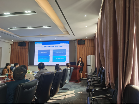 董婷博士以《如何提升思想政治工作的亲和力》为题,从思想政治教育亲和力的科学内涵、基本特征和提升策略三个方面进行阐述,分享了个人在思政课堂教学过程中的经历和感想,对在实际工作中如何构建协同育人机制,引导学生进一步坚定中国特色社会主义道路自信、理论自信、制度自信、文化自信,坚定共产主义理想信念提供了理论基础。