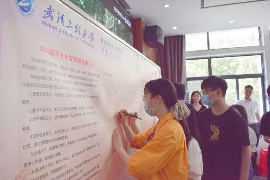 全体毕业生党员签署了《2022届毕业生党员离校承诺书》,共同庄严承诺:离校之际,将立足本职,站好在校最后一班岗;毕业后牢记党员身份,踏实进取,履行使命,不负母校的栽培和厚望,努力为党旗增光添彩。