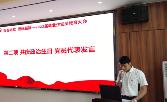 本次教育大会是学院2022届毕业生党员教育系列活动之一,自5月以来,学院陆续组织开展了毕业生党员志愿服务、优秀毕业生党员经验交流分享会、“校史馆里讲党课”、共庆政治生日等形式丰富的教育活动,将党员离校教育贯穿整个毕业流程,旨在强化毕业生党员党性意识,增强党性观念,筑牢青年党员爱党爱国、爱校荣校的精神品格,教育毕业生党员铭记初心使命,勇担时代重任,在强国逐梦的新征程上进一步发挥党员先锋模范作用。(审稿 李佳)