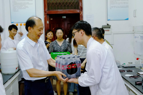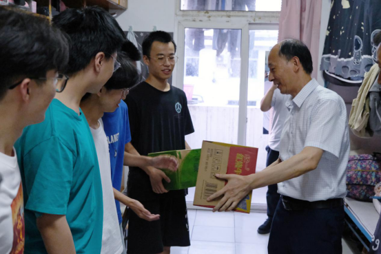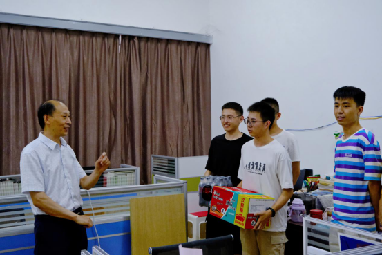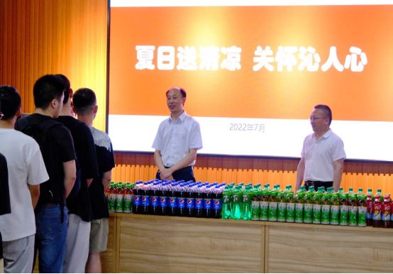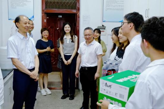 在学院大厅,喻发全为留校学生赠送了消暑饮料。他充分肯定了留校学生认真备考考研、学科竞赛和刻苦科研的进取精神,叮嘱大家在做好学习科研的同时要严格遵守学校疫情防控常态化管理及其他规定,强化安全意识,注意卫生防疫、交通、生命财产等安全。他表示,学校和学院将为留校学生做好条件保障。