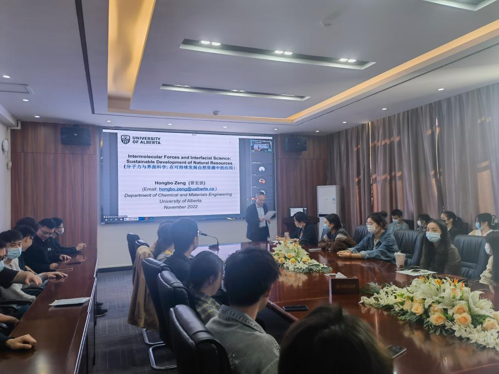、校庆办、科发院、研究生院邀请,加拿大阿尔伯塔大学化学工程和材料工程系终身教授、加拿大工程院院士、国家讲席教授(Tier 1 Canada Research Chair)、加拿大皇家科学院青年院士曾宏波在线为我们作了一场题为“Intermolecular Forces and Interfacial Science: Sustainable Development of Natural Resources (分子力与界面科学:在可持续发展自然资源中的应用)”的学术报告。报告会由草榴社区