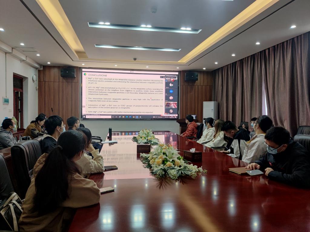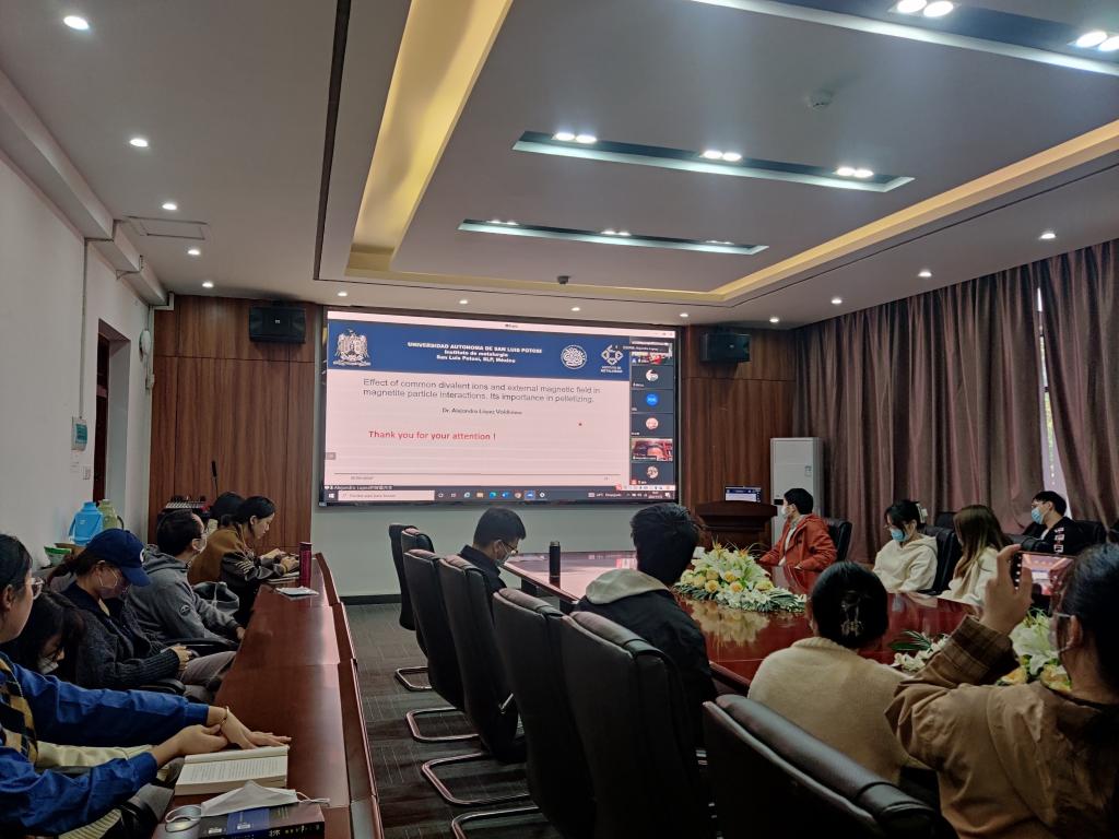 、校庆办、科发院、研究生院邀请,美国工程院院士,墨西哥科学院院士,墨西哥圣路易斯波托西自治大学终身教授Alejandro López-Valdivieso在线为我们作了一场题为“Effect of common divalent ions and external magnetic field in magnetite particle interactions: Its importance in pelletizing”的学术报告。报告会由草榴社区