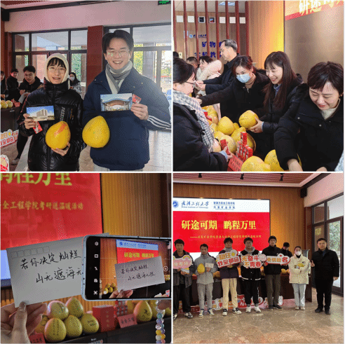 组织开展了“研途可期 鹏程万里”考研送温暖活动。学院全体班子成员、各毕业班班主任、全体辅导员参加此次活动,并向学院2024届考研学子送上加“柚”礼包,祝福考生金榜题名,一战成“硕”。