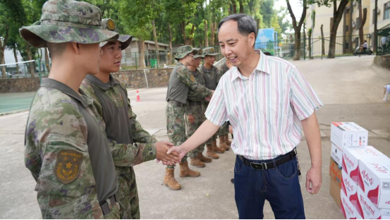 联合土木工程与建筑学院看望慰问军训教官和参训学生,并详细了解军训开展情况。双方学院领导和辅导员老师参加本次活动。