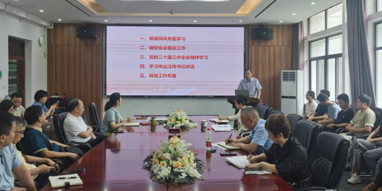 会上,学院党委书记江本武带领全体教职工学习了 “学校党委三届九次全体(扩大)会议暨2024年秋季学期中层干部会议精神”,重点学习了党的二十届三中全会精神,传达了汪伟书记在中层干部会上的讲话,并部署了近期有关师德师风专题工作及安全稳定等工作任务。