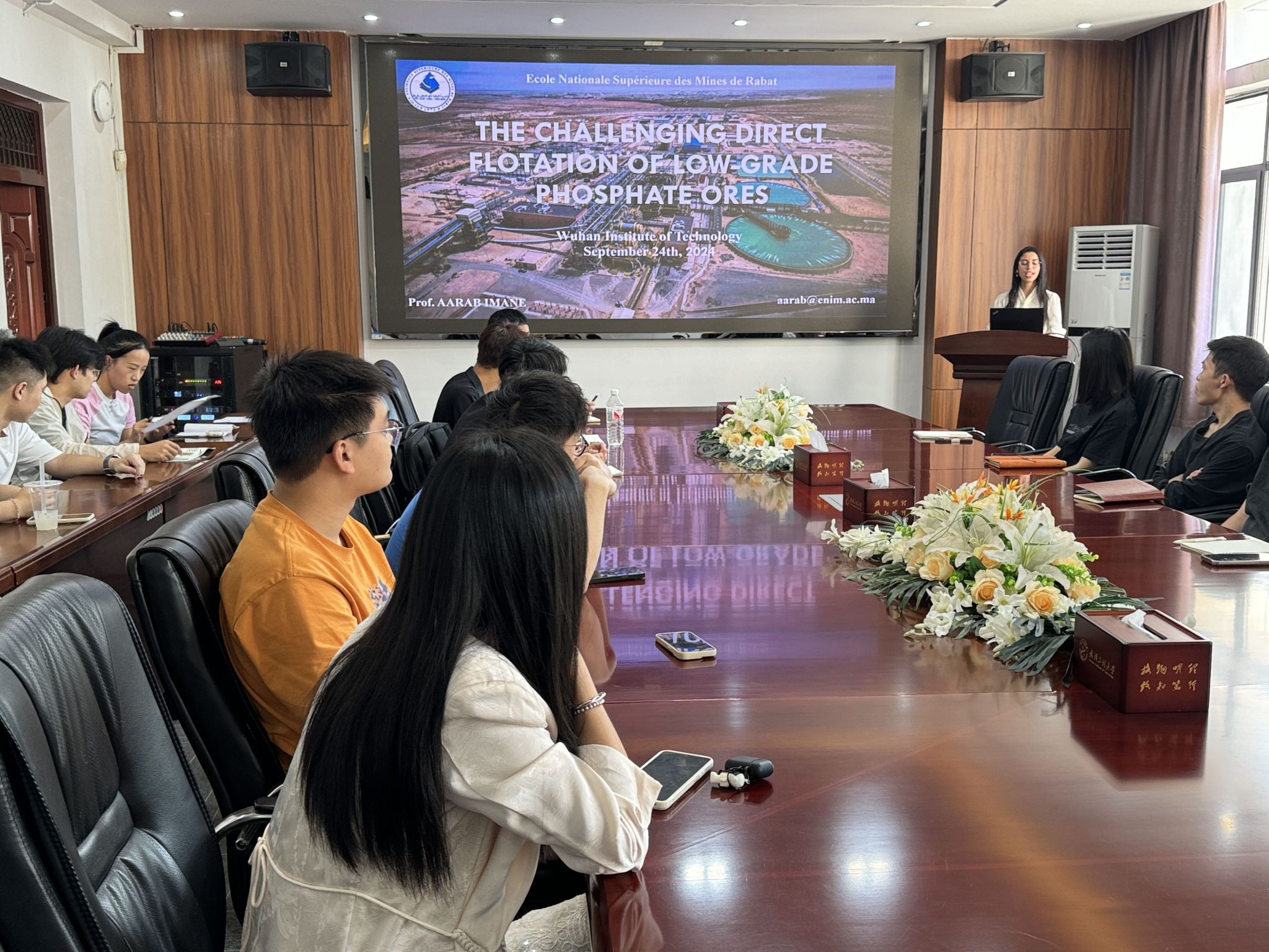 会后,Imane教授与师生进行了深入交流,特别是针对低品位磷矿选矿工艺、药剂等方面国内外的差异进行了探讨,激发了研究生的科研热情,引导研究生拓宽学术视野,与会师生收获颇丰。