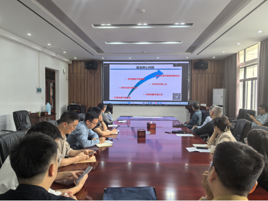 拟申报基金的三十多位教师参加报告会,报告会由院长何东升主持。