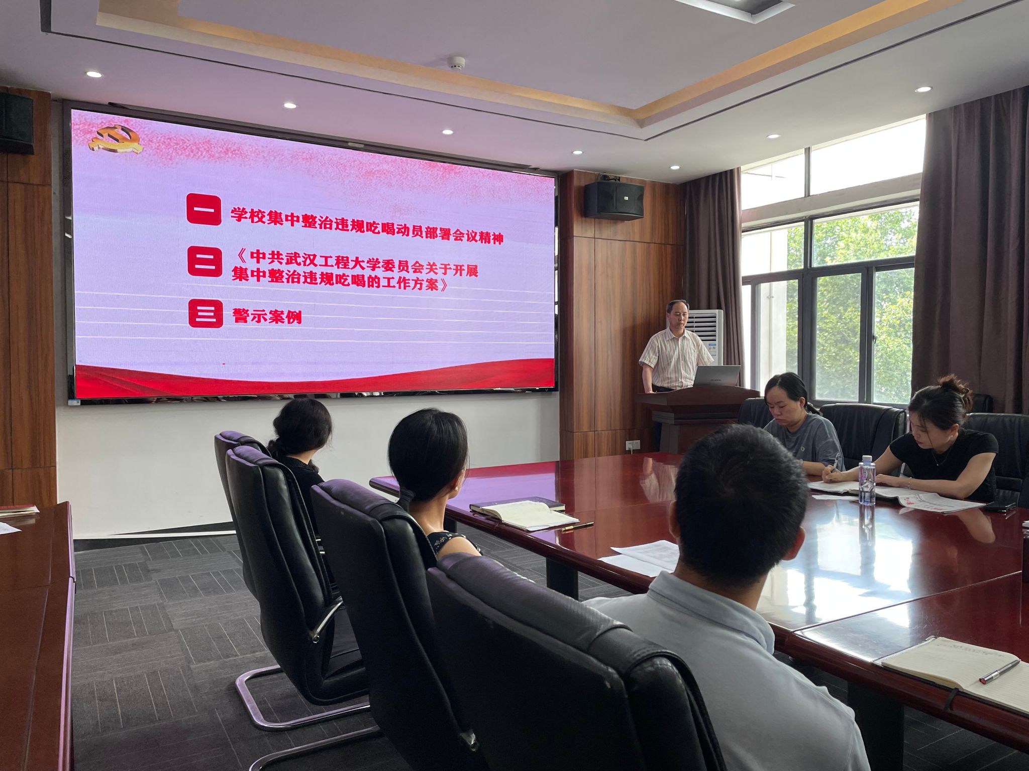 委员会关于开展集中整治违规吃喝的工作方案》,对学院集中整治违规吃喝工作进行部署安排。他强调,各教研室、办公室全面自查自纠,党员干部要对照纪律要求,认真学习领会相关纪律法规和本次集中整治的具体要求,自觉抵制违规吃喝。