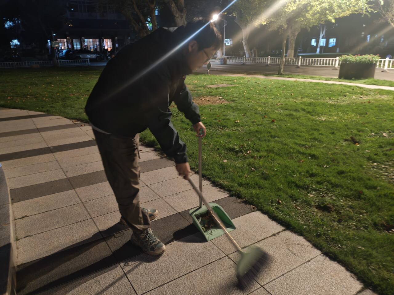 活动中,学员们精神饱满,热情高涨。他们手持扫帚、簸箕、抹布等清洁工具,分工明确,配合默契。有的仔细清扫广场地面的落叶与杂物,有的俯身捡拾绿化带中的纸屑、烟头等隐匿垃圾。经过一番辛勤劳动,许志伟广场的环境面貌焕然一新,变得更加整洁、亮丽。