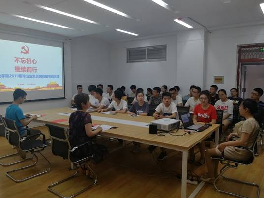 2019届毕业生党员大会于6月12日上午9:30在学院201会议室举行。学院党委书记孔海霞,学院党委副书记李佳,辅导员李昊昱以及全体毕业生党员出席了会议。
