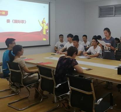 之后全体党员一起重温了入党誓词,学院提醒党员同志们不忘初心、牢记使命。