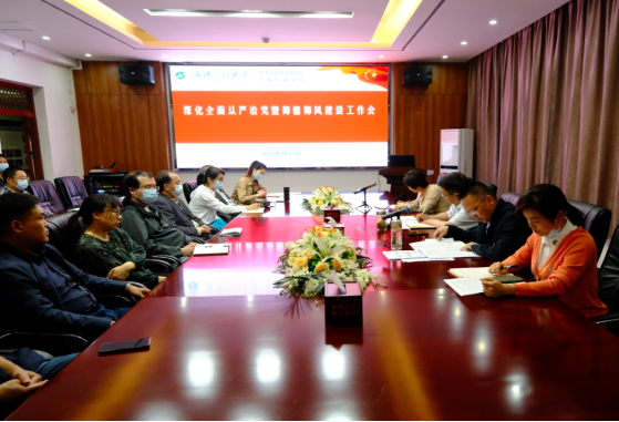 在领创大楼419会议室召开深化全面从严治党暨师德师风建设工作会,学院领导班子成员、党委委员及全体教职工参加了本次会议,学院党委书记路海华主持会议。