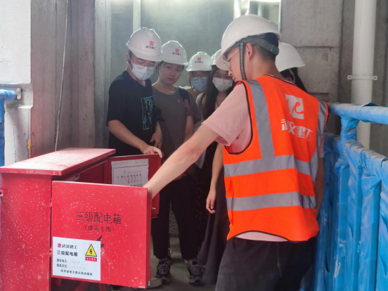 在武汉建工(集团)有限公司项目管理六公司安全负责人范金桥的带领下,学院党员师生一行参观了施工一线,全面了解施工安全防护措施及安全生产建设知识。