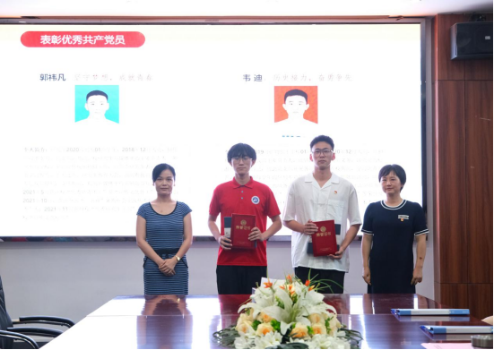 学院党委副书记李佳宣读《关于表彰2021-2022学年度优秀共产党员的决定》,为受表彰党员颁发荣誉证书和纪念品。