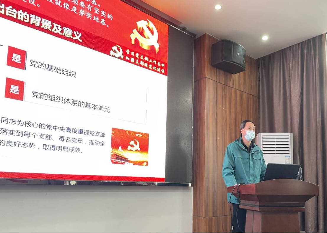 培训中,党委书记江本武细致全面解读了《中国共产党支部工作条例(试行)》,阐释了《条例》制定和实施的背景和意义,并结合支部工作实际对条例内容进行逐章解读。他指出,《中国共产党支部工作条例(试行)》是对《中国共产党党章》中关于党支部建设要求的进一步细化和具体化,《条例》的出台提高了支部建设的标准化和规范化,推动了全面从严治党不断向基层延伸,明确了各级党委抓好支部工作的意义,各党支部书记要对《条例》内容真学习、真研究、真践行,以此指导党支部标准化、规范化建设,推动《条例》落到实处、见到实效。