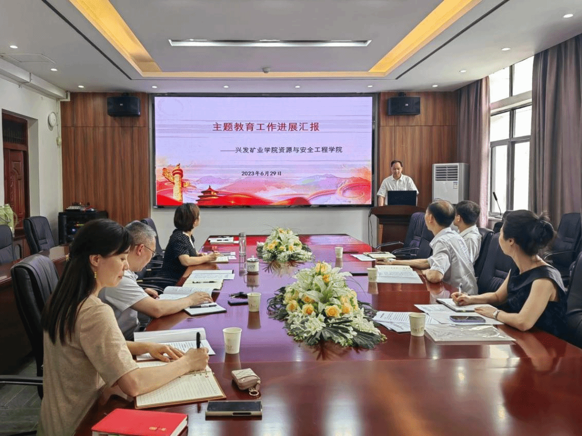 会上,学院党委书记江本武汇报了学院主题教育开展情况。