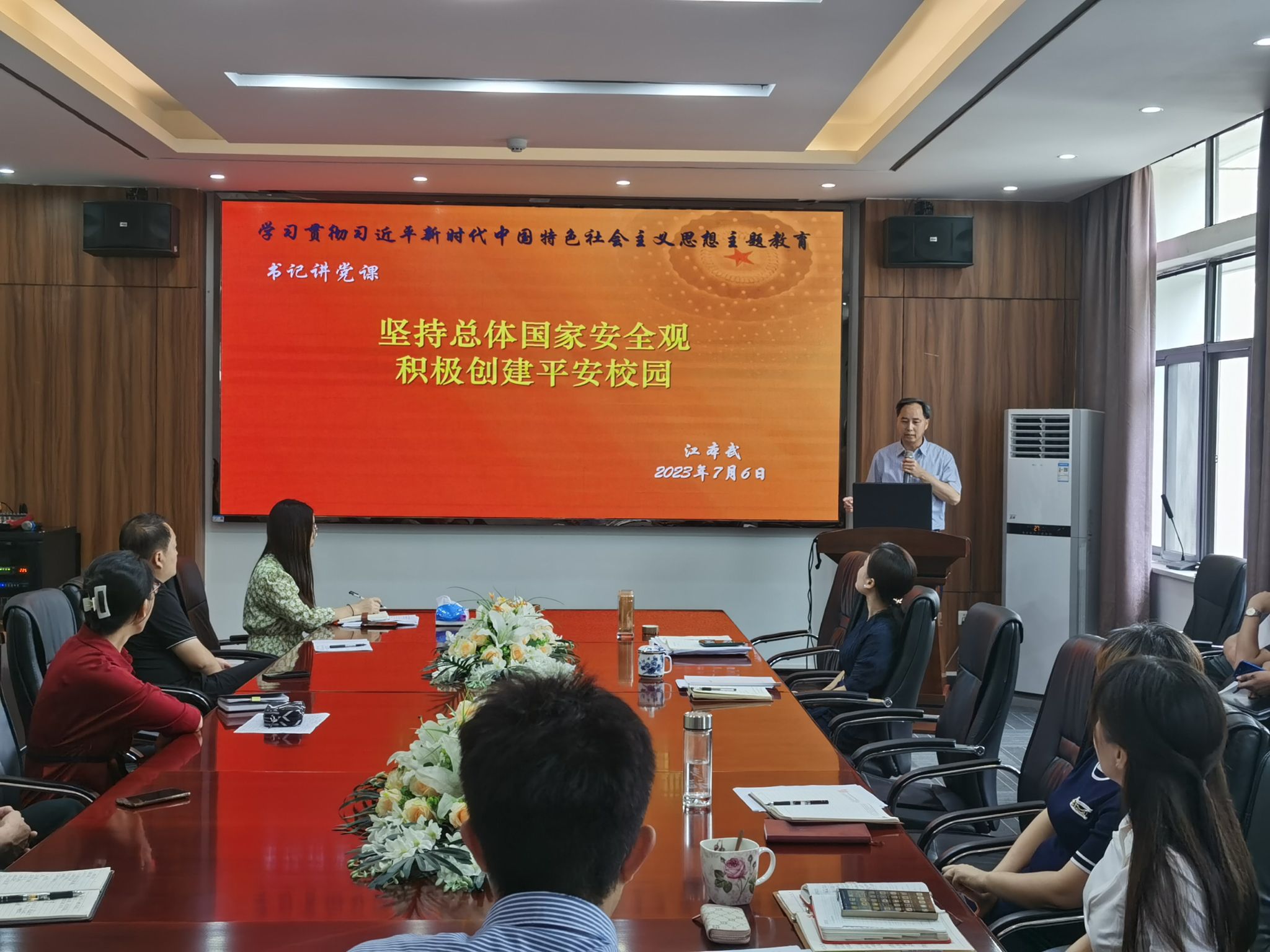 江本武以“坚持总体国家安全观 积极创建平安校园”为题,从国家安全是安邦定国重要基石、正确理解和把握总体国家安全观、维护国家安全创建平安校园三个方面深刻剖析了新形势下坚持总体国家安全观的理论意义、时代意义、实践意义。他强调全院师生都要树立“安全责任重于泰山”的思想观念,始终绷紧“安全第一”这根弦,坚决落实平安校园建设要求。结合学校安全工作的相关文件和要求,他从消防安全、治安安全、网络安全、心理健康、实验室安全、意识形态安全等方面提醒督促学院全体教职工提高安全意识,提升防范能力,共建平安学院、平安校园。(审稿 江本武 李佳)