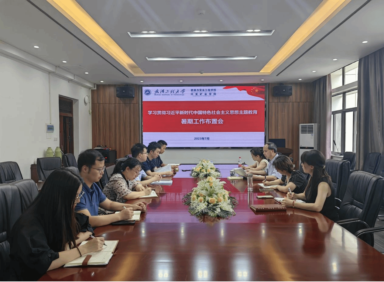 在领创大楼419会议室召开学习贯彻习近平新时代中国特色社会主义思想主题教育暑期工作布置会。学院全体在家领导班子成员、党委委员及党支部书记参加会议。