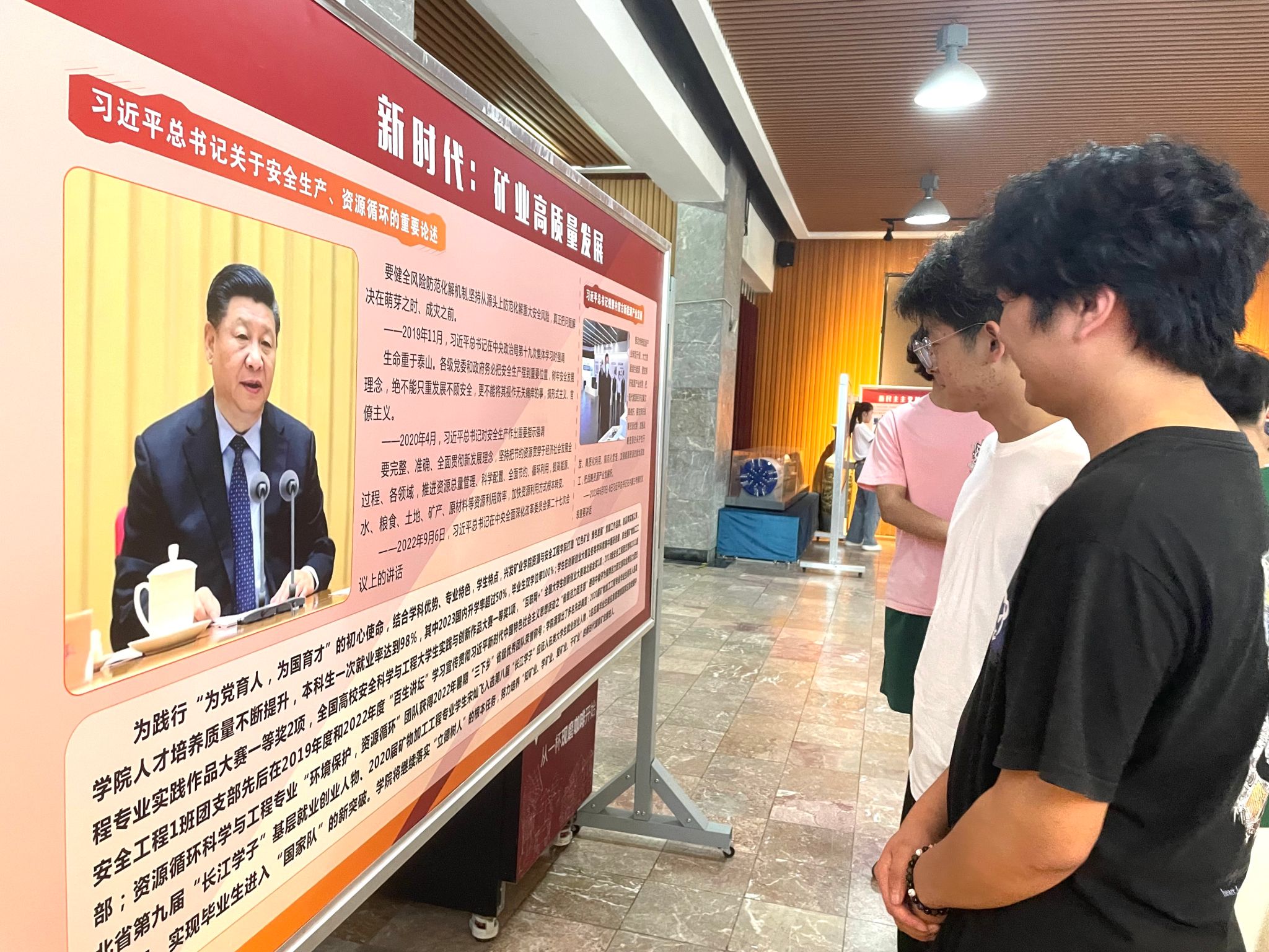 “通过这个展览,我更加直观地把握了矿业在党的不同历史时期的发展历程,对我所学的专业有了更加深入的了解,同时我也为矿业先辈们为了党和国家的发展大局奉献自己的精神而动容,虽然我目前还只是一名学生,但我一定会以先辈们为榜样,争取能为矿业行业为党和国家的发展贡献自己的一份力量。”2022级矿物加工工程1班的赵思匡说。