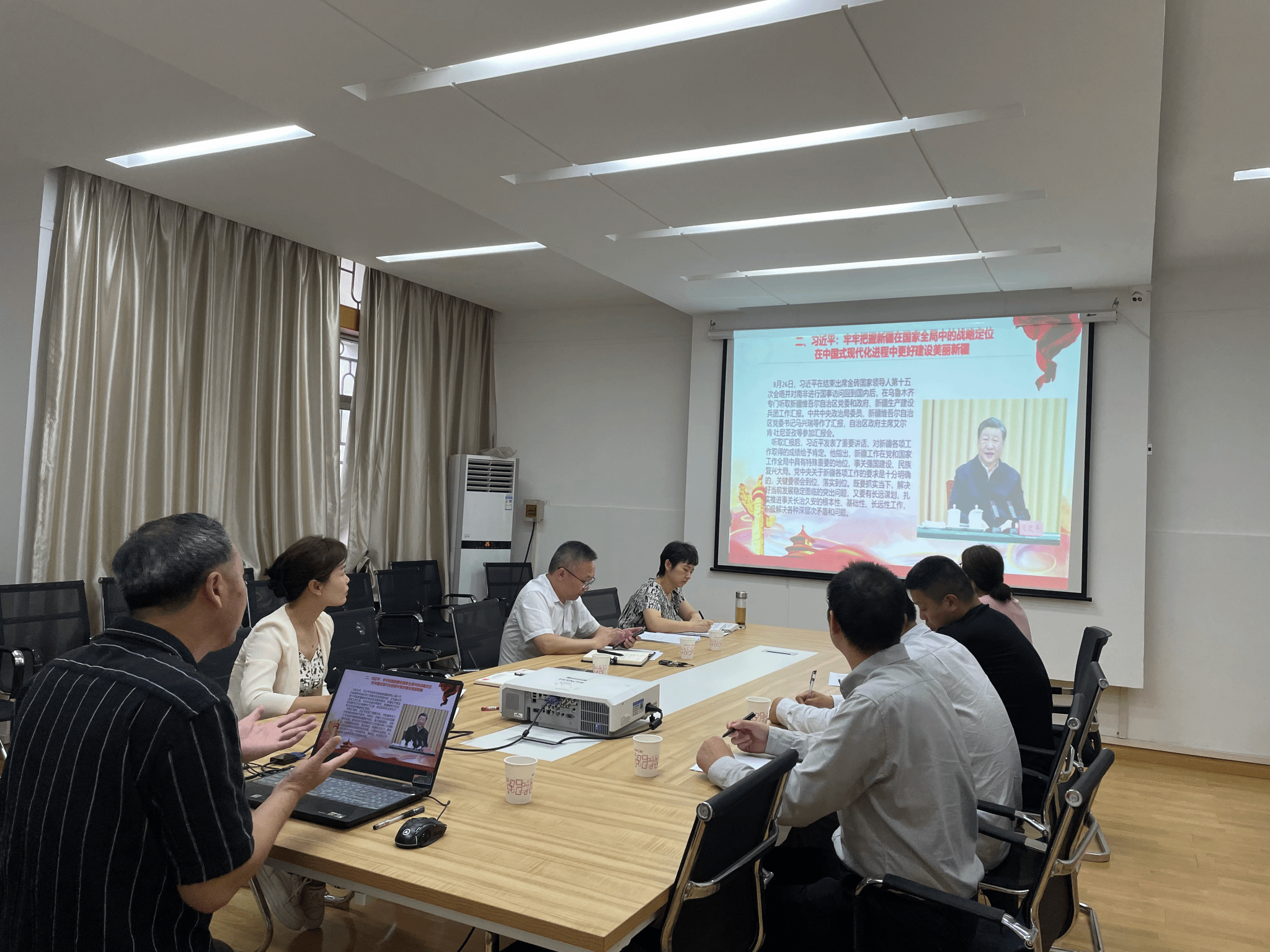 在领创大楼201会议室召开了党委理论学习中心组会议,学院领导班子成员、教研室主任、支部书记参加学习会,会议由学院党委书记江本武主持。