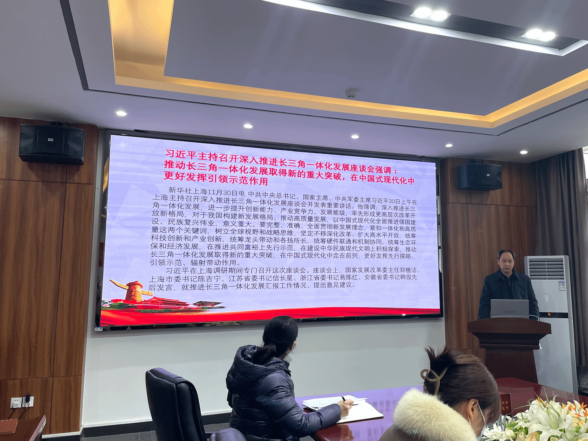 会议重点学习了习近平在第十个国家宪法日之际重要指示精神和习近平在深入推进长三角一体化发展座谈会的讲话精神,并就2023年学院目标考核有关事宜进行了部署。