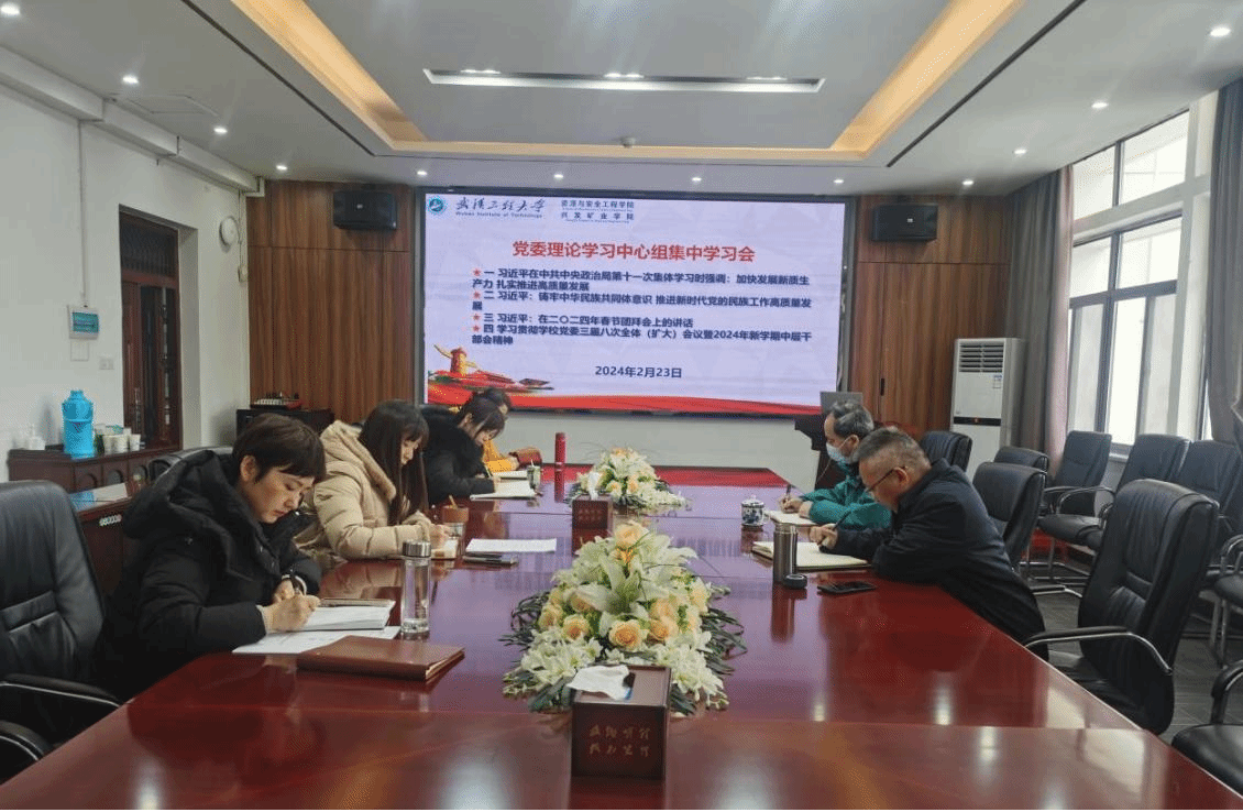党委在领创大楼419会议室召开党委理论学习中心组学习会暨新学期工作谋划会,集中学习习近平总书记在中共中央政治局第十一次集体学习时的重要讲话及习近平总书记重要文章《铸牢中华民族共同体意识 推进新时代党的民族工作高质量发展》、在中共中央国务院春节团拜会上的重要讲话,传达学习全国、全省教育工作会议精神、学校党委三届八次全体(扩大)会议精神。会议由学院党委书记江本武主持。