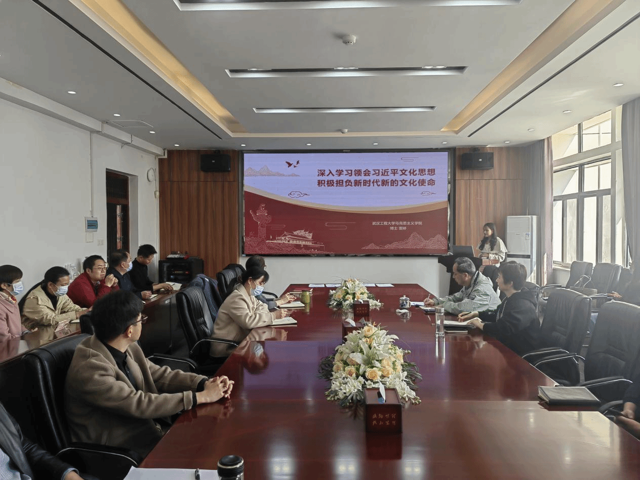 在领创大楼419会议室开展学习贯彻习近平文化思想专题宣讲,会议邀请马克思主义学院教师董婷做理论宣讲。学院全体教职工参加学习,会议由学院党委书记江本武主持。