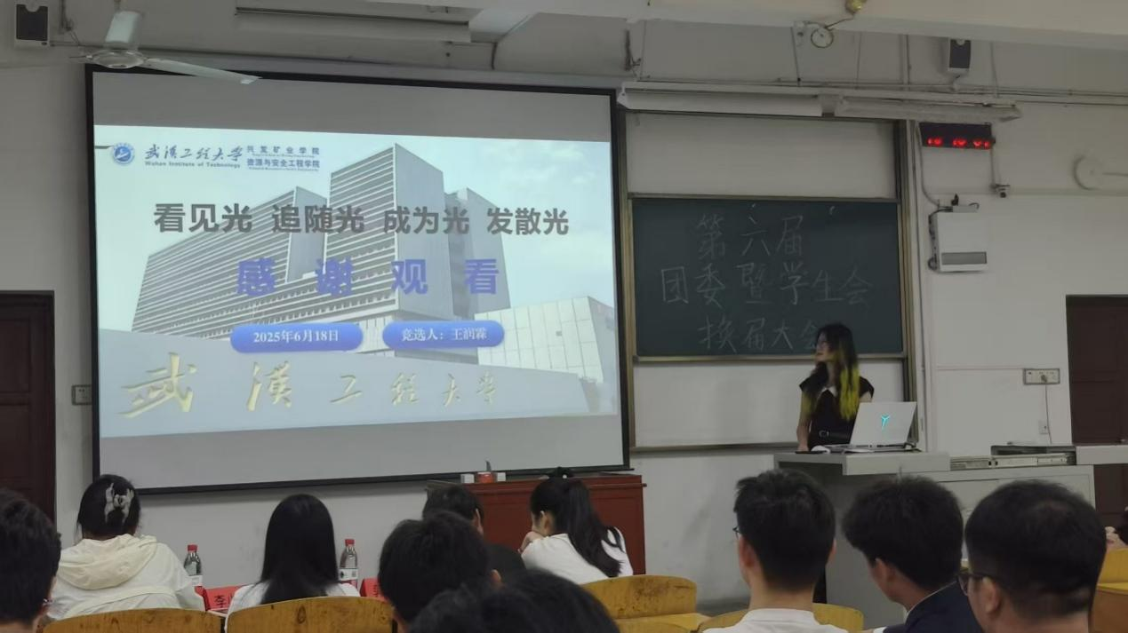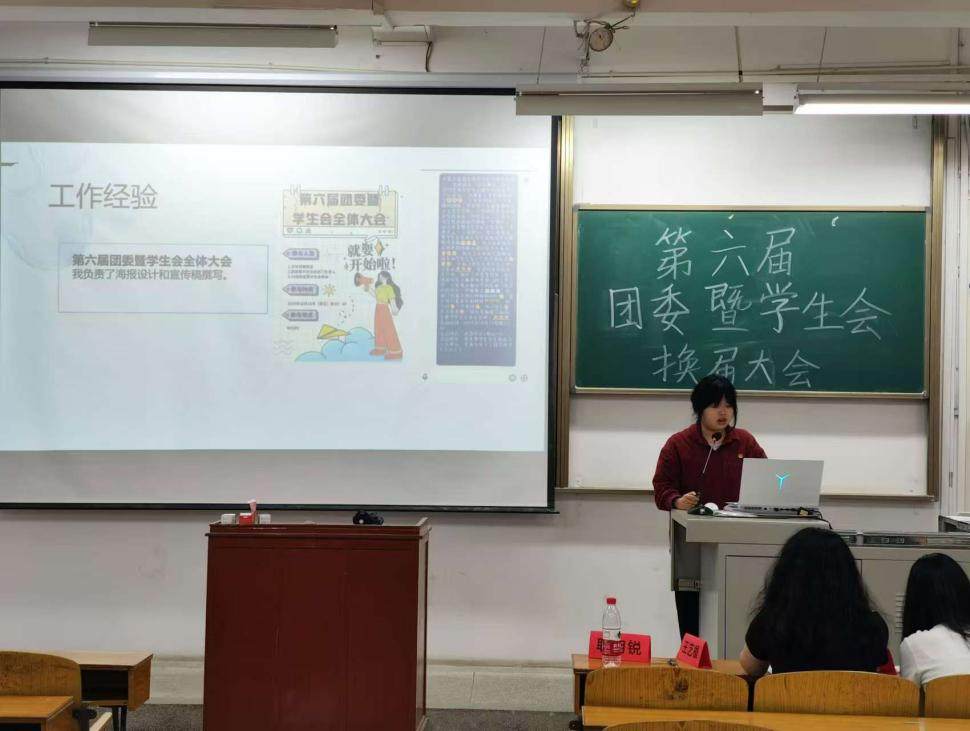 第六届团委暨学生会干部换届大会在武昌校区二教2102教室隆重举行。学院团委老师耿胡锐,团委副书记(学生)王艺樨,学生会主席团成员及各部门竞选人参加了此次会议。