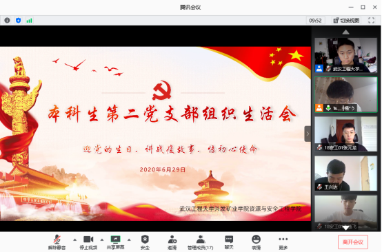 全体本科生和研究生党支部召开了以“迎接党的生日、讲战疫故事、悟初心使命”为主题的线上组织生活会,学院党委副书记李佳、学院党务干事杜娟、辅导员孙奕、学院全体党员、预备党员参加会议。