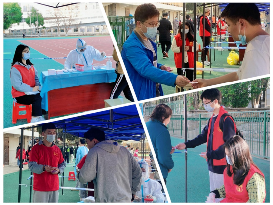 第一次参加线下的核酸检测志愿服务,早上还不到七点的时候到操场,但人就已经在排队,开始准备参加核酸检测,学校学生以及社区的居民都特别积极的参加核酸检测,医护人员在准备好之后就立马开始检测,我们志愿者也开始工作。在这个过程中,大家都积极配合防疫措施,整个过程井然有序,高效快捷,在我工作的两个半小时里就有六七百人做完核酸检测。我的工作是在同学们做完核酸检测后发核酸检测证明的那个小卡片,比较简单,但看到同学们积极参加检测,志愿者们在现场努力帮忙,医护人员认真工作,心里想起一句的话——此生无悔入华夏,来世还来种花家。