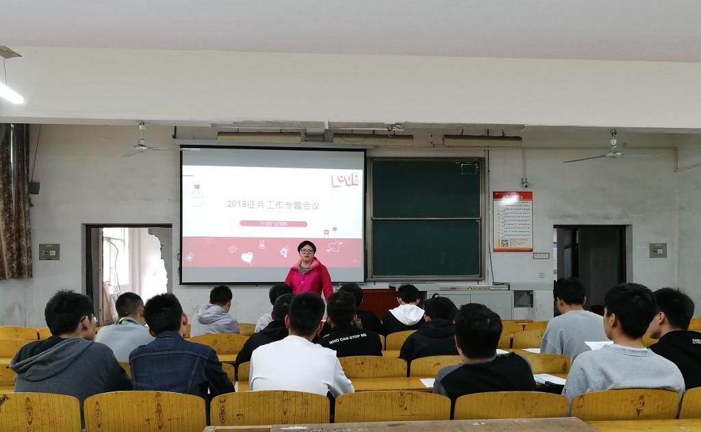 征兵工作专题会议在武昌校区W2130教室召开,本次会议由学院辅导员杜娟老师主持,全院班长共同参加。