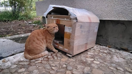 青年志愿者协会提前准备相关物资,包含纸箱、防潮垫、防水布等,并接受了同学们旧衣、猫粮的捐赠。
