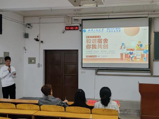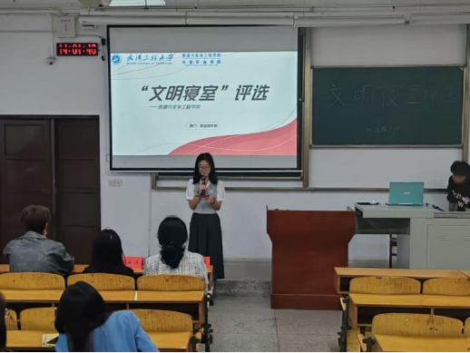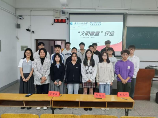 团委暨学生会权益服务部在武昌校区W2101教室组织开展了“文明寝室”评选活动。学院新媒体中心主要负责人罗君海、团委组织部主要负责人王艺樨、学术调研部主要负责人张姿涵以及参选寝室代表参加了此次活动。