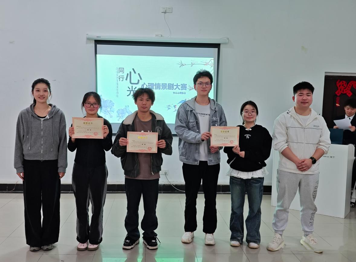 “心光同行”心理情景剧决赛在沉浸式展演中圆满落幕。学院心理健康辅导员王耀眉、学院团委书记耿胡锐、心理协会成员及学生代表担任比赛评委。