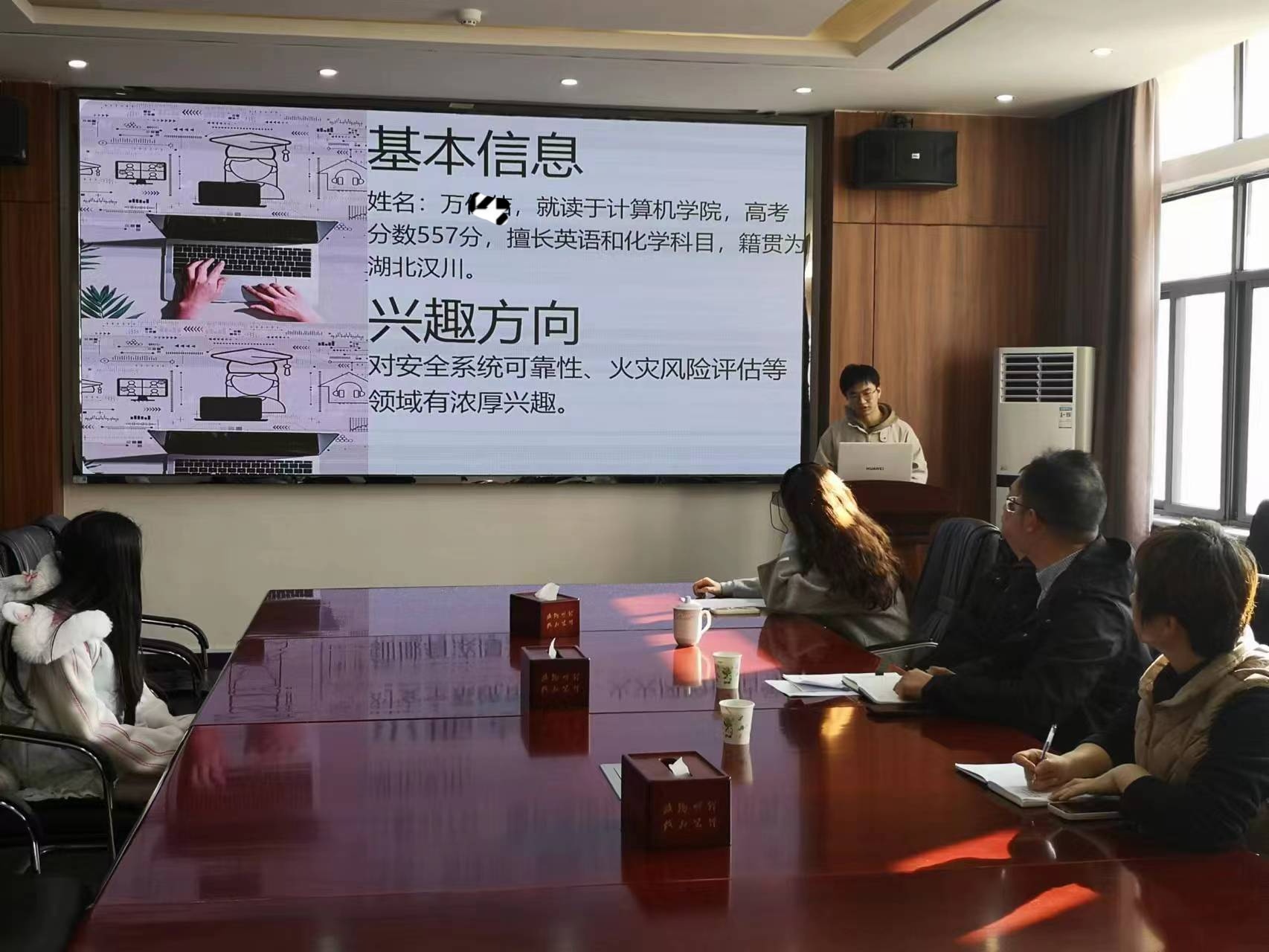随后,两位意向转入学生依次进行个人陈述。面试组专家围绕专业知识衔接、学习适应计划等问题进行提问,学生们条理清晰的回答进一步展现了他们的转专业诚意与学习潜力。经集体评议,面试专家组一致同意两位学生转入安全工程专业,认为他们的专业背景与学习规划符合安全工程学科数智化发展的需求,有望为专业带来新活力。